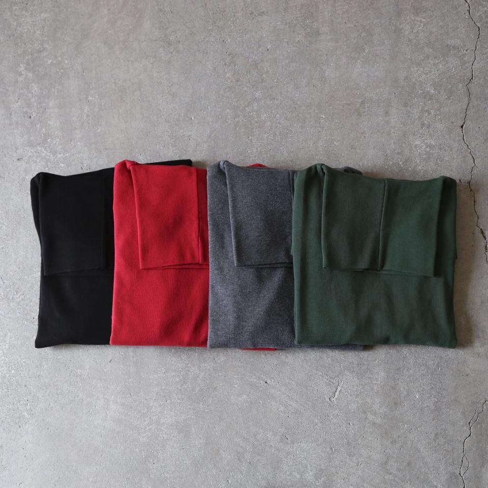 滑らかな肌触りが魅力のコットンフライス。ちょうどいい肉厚感と、もっちりとした素材感がくせになる一枚。