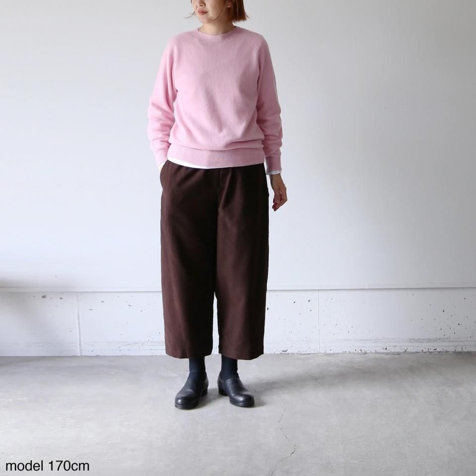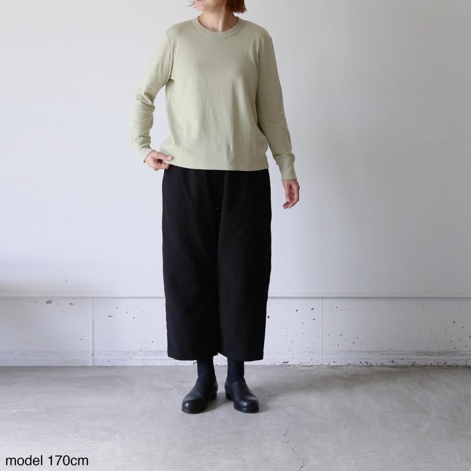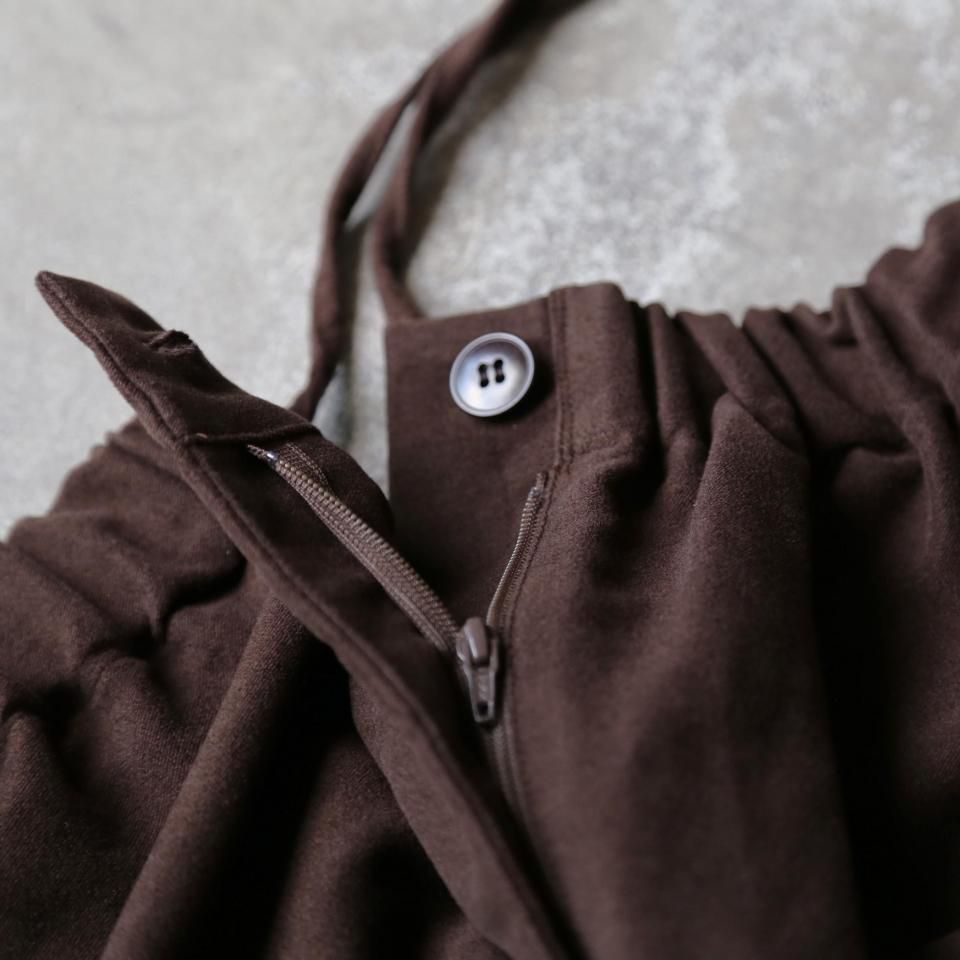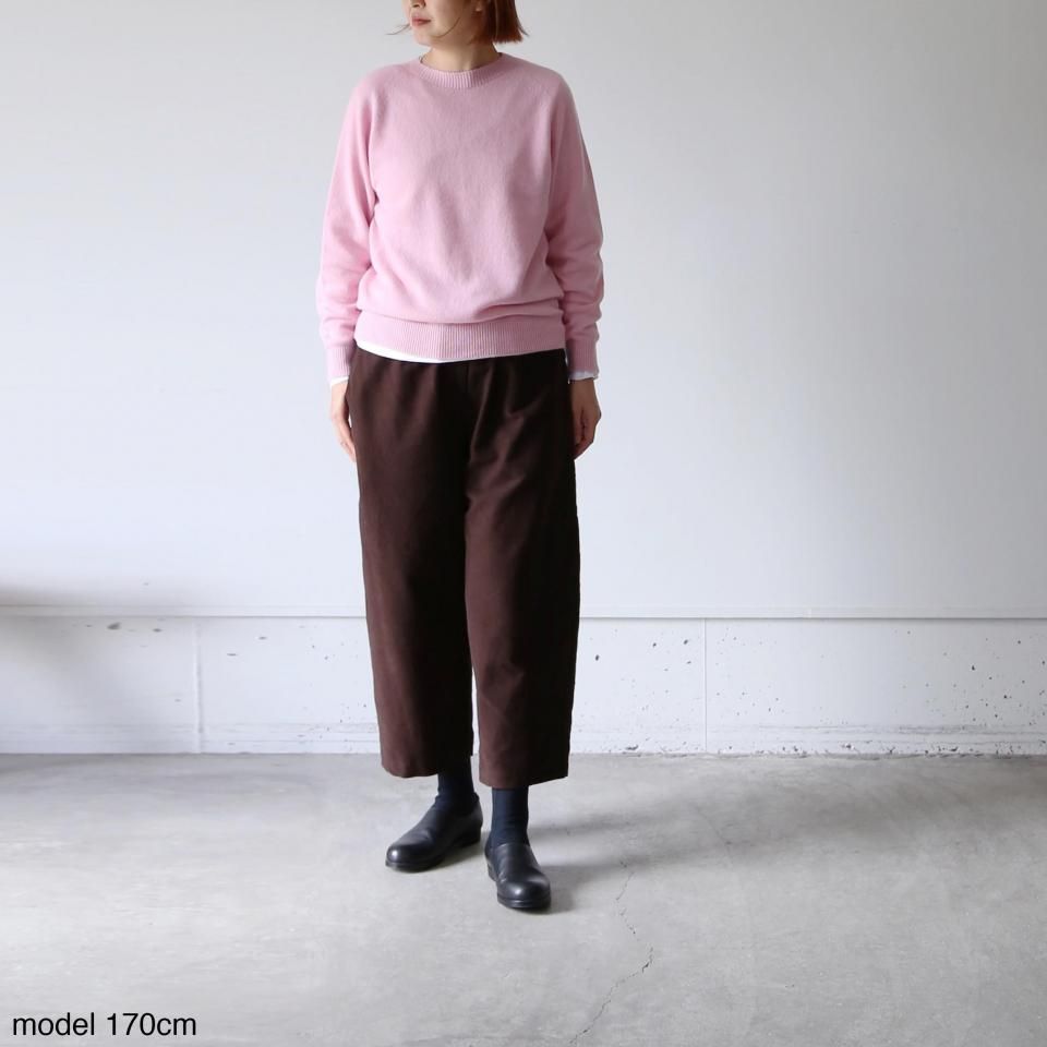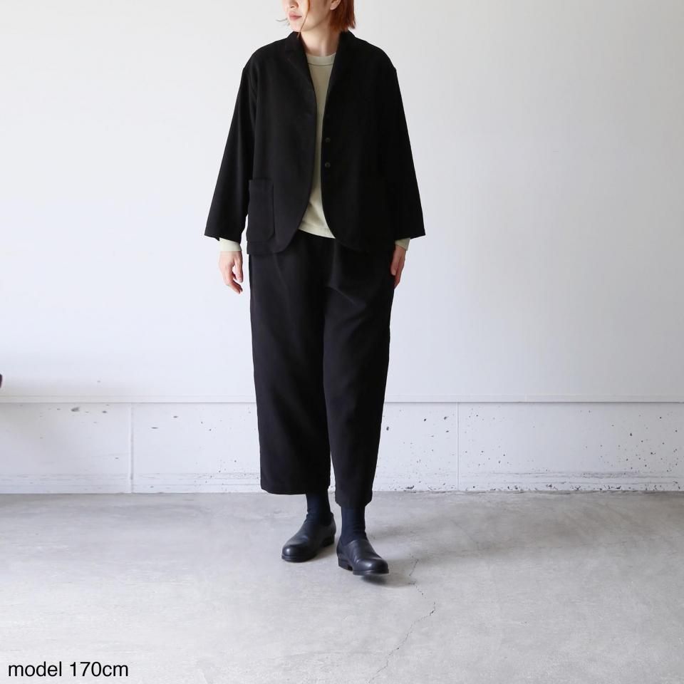楽な穿き心地ながら、すっきりと見せてくれるボリュームのテーパードパンツ。 ゆったりと丸みのある、やわらかなシルエットです。 ほんのり起毛感のあるコットンで、ふっくら暖かみのある素材感です。 ウエストはゴムとファスナー前開き仕様です。内側の共布リボンでサイズ調節可能でです。 ネイビー、ブラックは、同素材のジャケットとのセットアップもおすすめです。秋冬のニットとラフに合わせて、単品使いでも活躍します。 【商品在庫について】 web shopの在庫管理には注意を払っておりますが、実店舗で販売も行っているため、web shopへの在庫反映が若干遅れてしまう場合がございます。どうぞご了承ください。