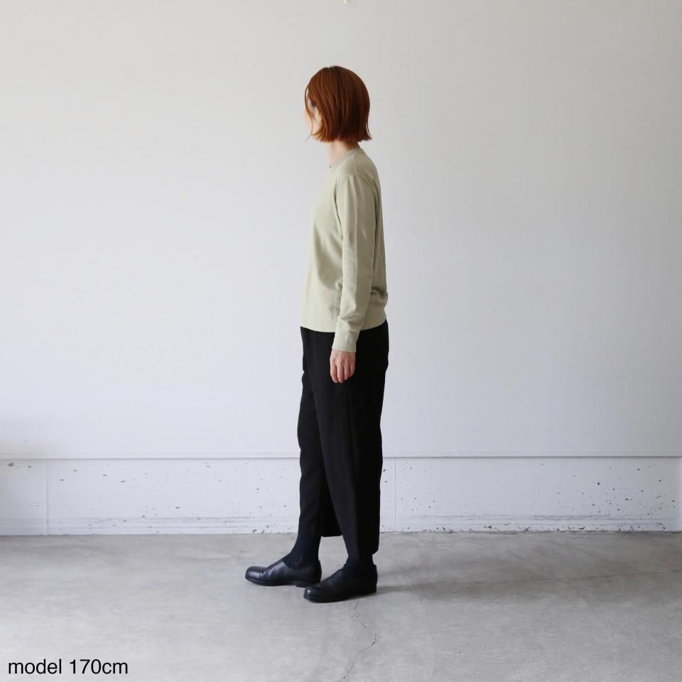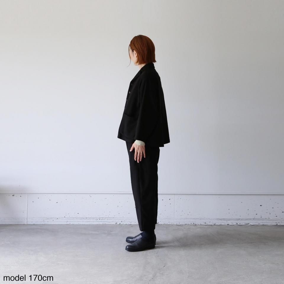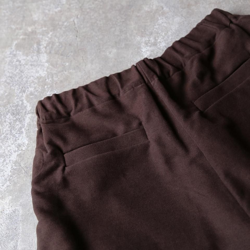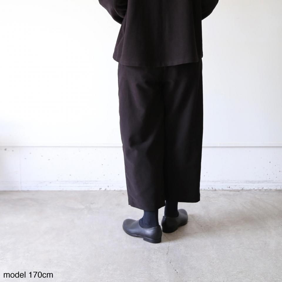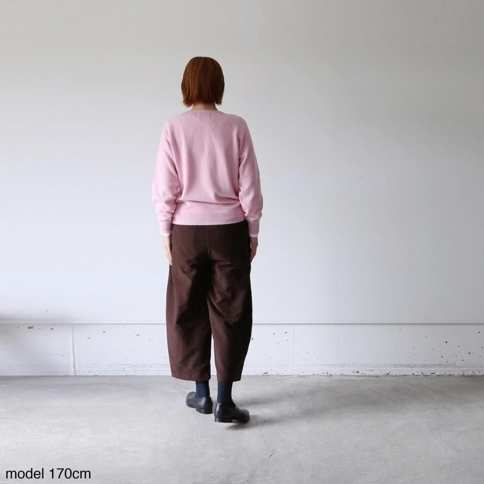 楽な穿き心地ながら、すっきりと見せてくれるボリュームのテーパードパンツ。 ゆったりと丸みのある、やわらかなシルエットです。 ほんのり起毛感のあるコットンで、ふっくら暖かみのある素材感です。 ウエストはゴムとファスナー前開き仕様です。内側の共布リボンでサイズ調節可能でです。 ネイビー、ブラックは、同素材のジャケットとのセットアップもおすすめです。秋冬のニットとラフに合わせて、単品使いでも活躍します。 【商品在庫について】 web shopの在庫管理には注意を払っておりますが、実店舗で販売も行っているため、web shopへの在庫反映が若干遅れてしまう場合がございます。どうぞご了承ください。