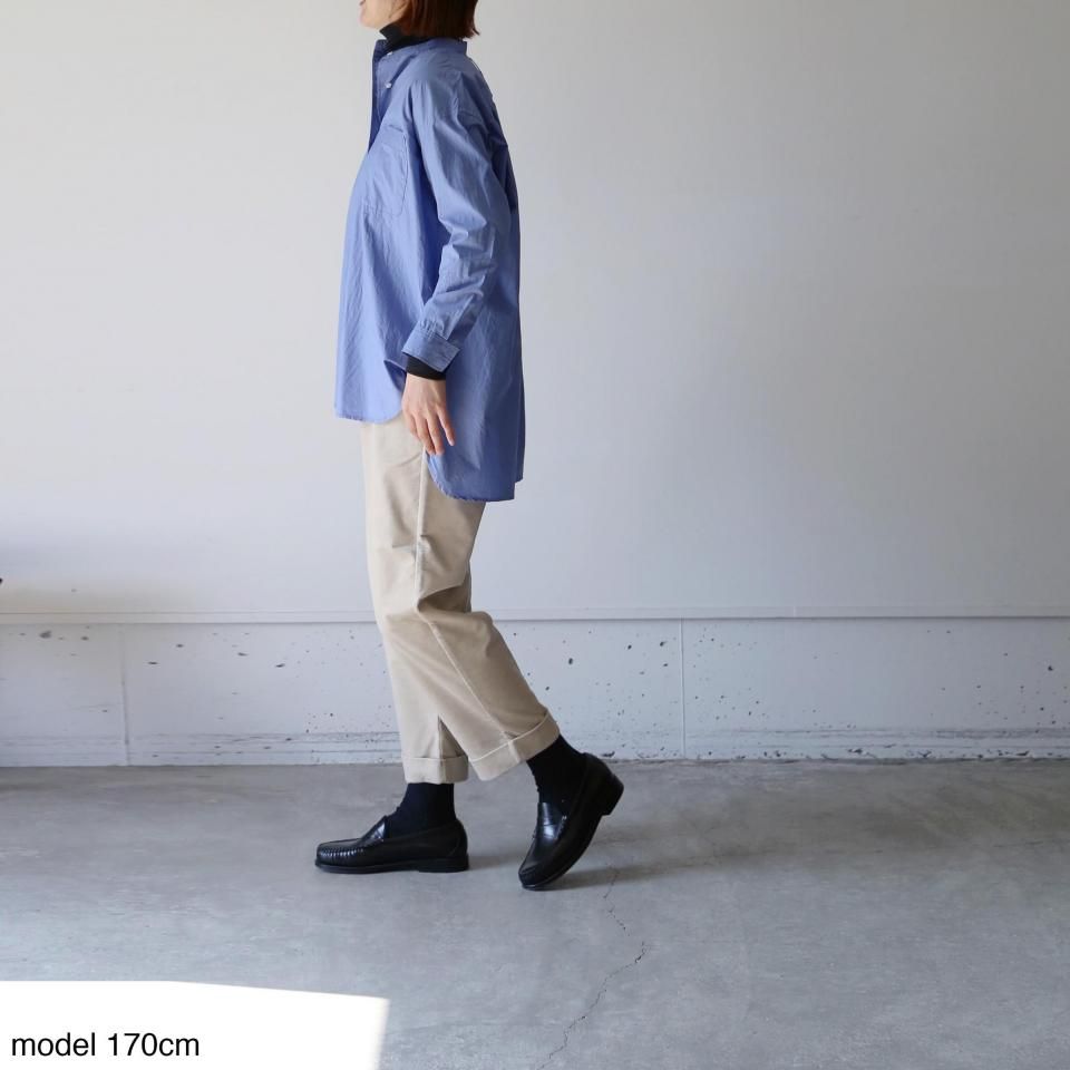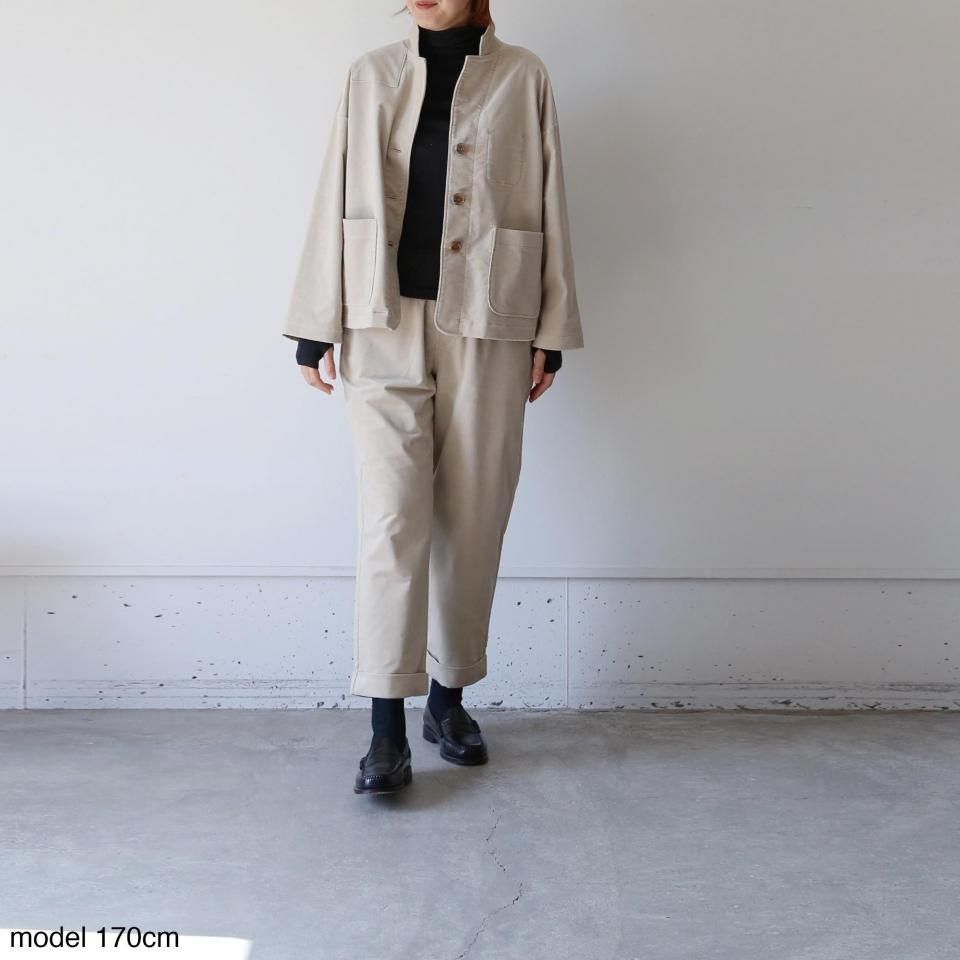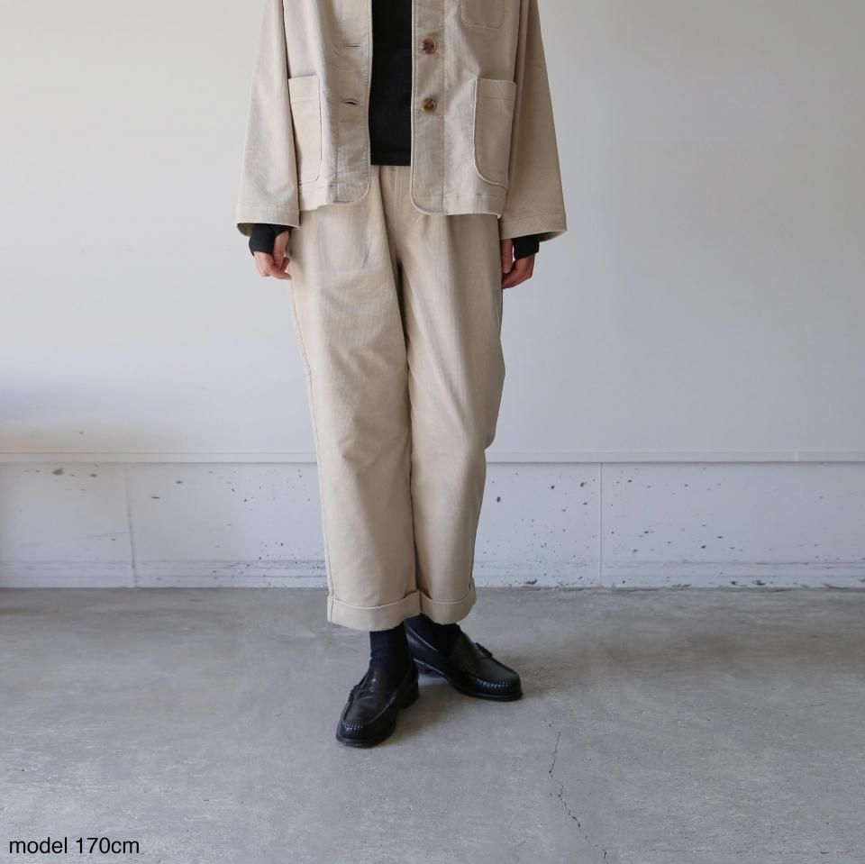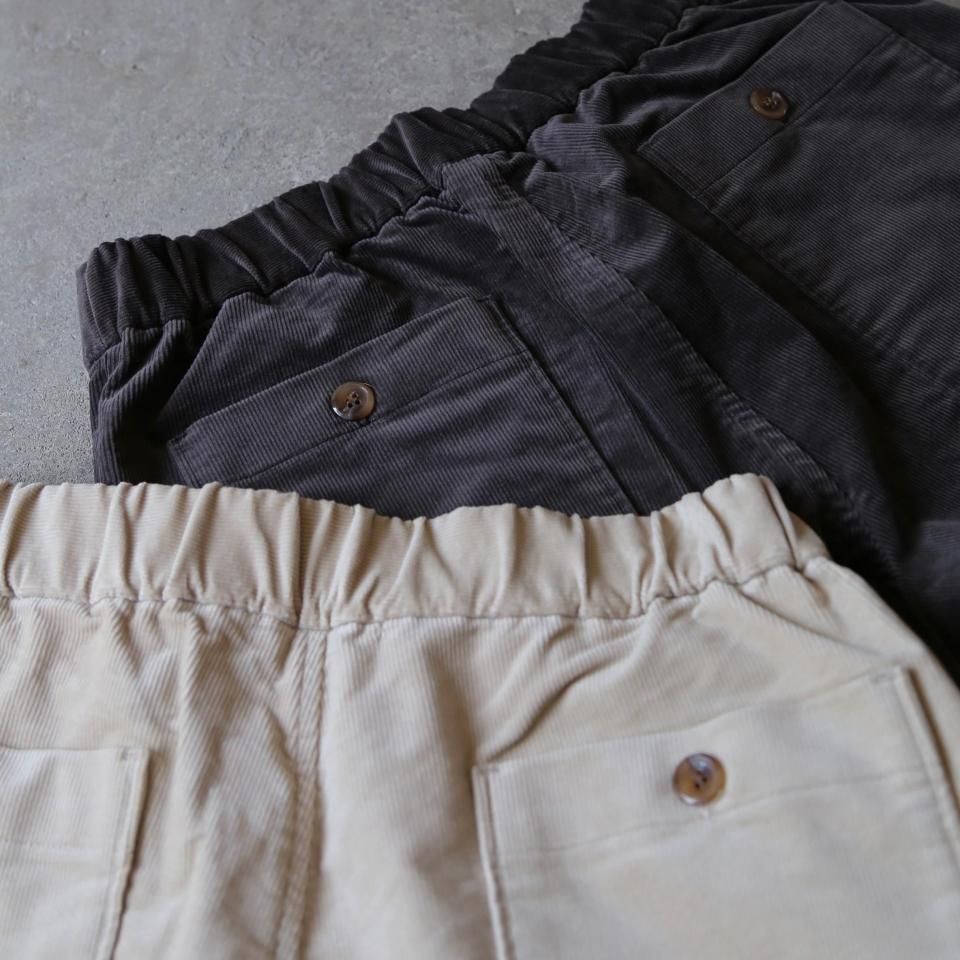 環境にもお肌にも優しいオーガニックコットンを使用した、風合い豊かなコーデュロイパンツです。やわらかな膨らみと、ストレッチ性のある快適な穿き心地。 ヒップ周りはリラックス感のあるシルエットで、すっきりとさせた裾はダブル仕様でクラシカルな表情をプラス。 ウエストはゴム仕様で、内側の紐でサイズ調節が可能。 コーデュロイの温かみのある質感と、カジュアルにも楽に穿いていただける機能性を兼ね備えた、デイリーに活躍するアイテムです。 【商品在庫について】 web shopの在庫管理には注意を払っておりますが、実店舗で販売も行っているため、web shopへの在庫反映が若干遅れてしまう場合がございます。どうぞご了承ください。