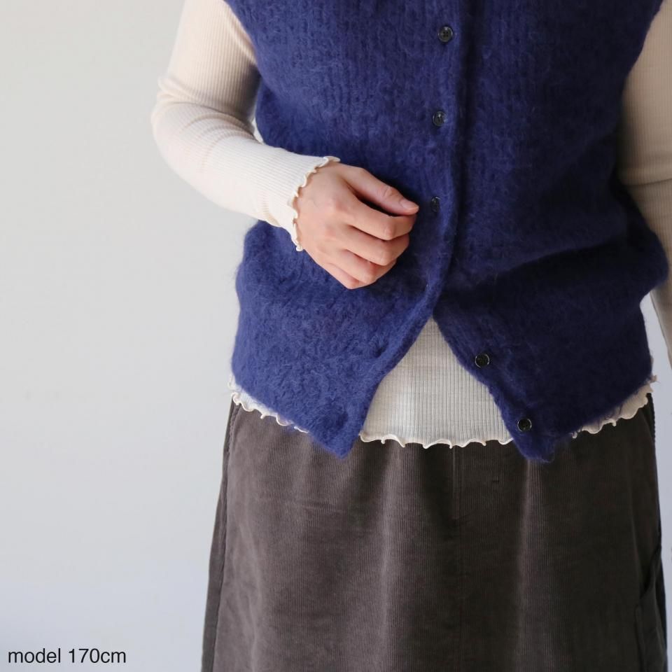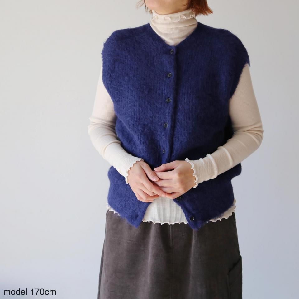 手洗いできるリブウールを使用した、新型メローモックネック。 首元、袖口、裾口にリブウール素材を使用し、優しいフィット感です。 繊細なメロー仕上げが、ひらひらとさり気ないニュアンスをプラスし、女性らしいやわらかさを演出。 温かみもありながら、細番手の糸を使用しているためすっきりと重ね着ができます。しなやかに伸びが良く、心地良いフィット感。 手洗いできるウォッシャブルウールで、チクチク感を感じさせない肌触りです。とろみと素材の軽さが特徴で、綺麗目にも合わせられる上質さが伝わる素材感。やさしいフィット感で、真冬の寒さから守ってくれる特別なインナーです。 モックネックデザインが、アウターからもチラリと覗きアクセントに。幅広いスタイリングが楽しめます。 【ネコポス、クロネコゆうパケット対応商品について】 こちらの商品は一点以内のお買い上げ時のみ、ネコポス、クロネコゆうパケットがご利用いただけます。 2点以上のお買い上げ、他にご注文商品がある場合や、お急ぎのお客様は、宅急便での通常配送をお選びくださいませ。 【商品在庫について】 web shopの在庫管理には注意を払っておりますが、実店舗で販売も行っているため、web shopへの在庫反映が若干遅れてしまう場合がございます。どうぞご了承ください。
