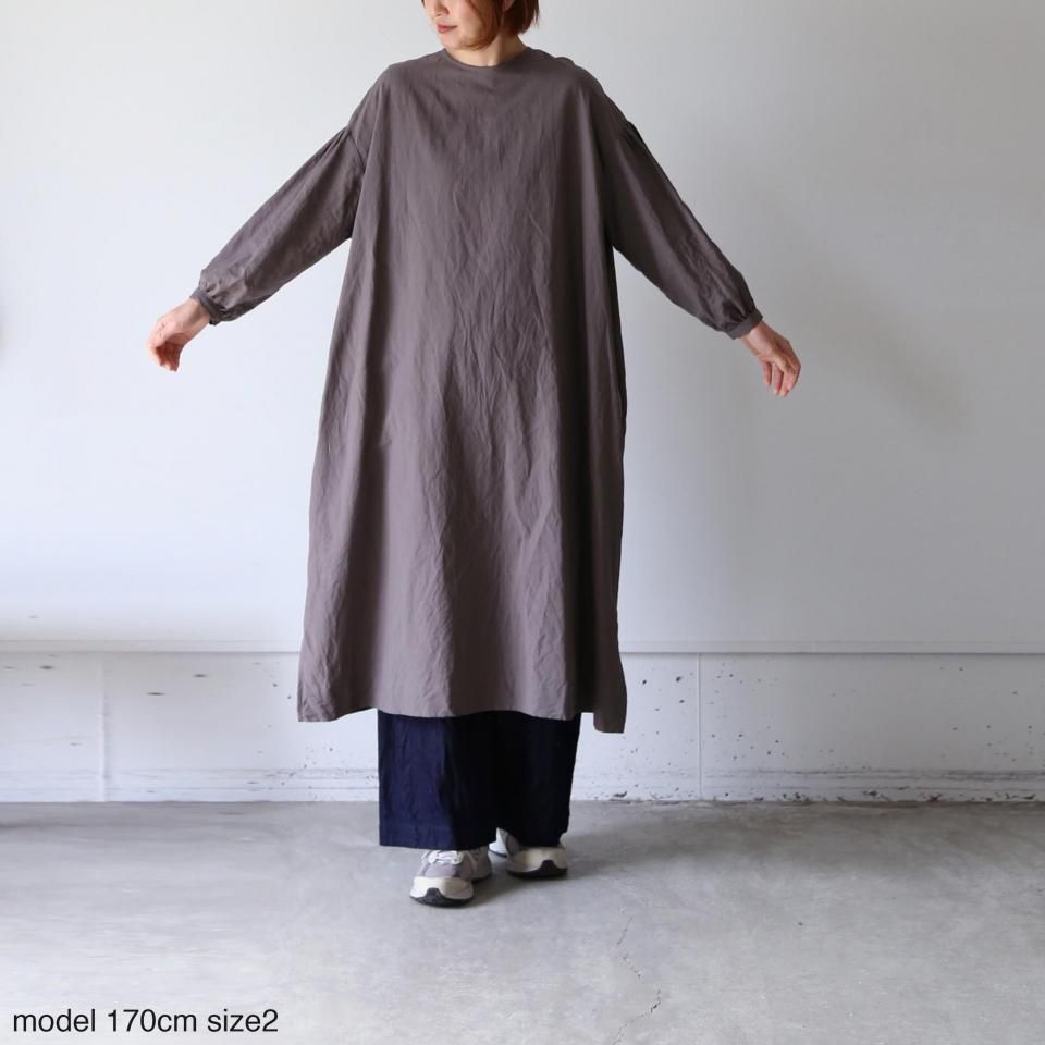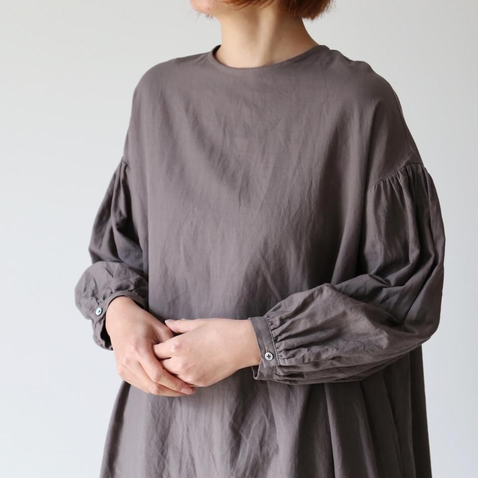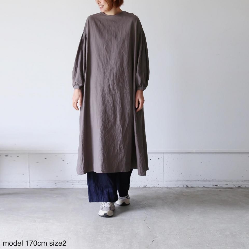 ふっくらと優しいフォルムのお袖のドレス。たっぷりとリラックスしたシルエットにやわらかなドレープ感。サイドスリットがアクセントになり、タイツを合わせてクラシカルな着こなしや、デニムを重ねてカジュアルなコーディネートにも。楽な着心地ながら、さりげない華やかさを添えてくれるドレスです。 すぽっとかぶって、後ろのスナップボタンを一つ留めるだけ。 コットンとラミー(麻)のナチュラルな素材感の中に微かに光沢が感じられ、カジュアルと高級感をあわせ持つ魅力的な素材です。高密度で滑らかな生地表面は、さらりとした肌触りで、日々袖を通したくなる心地良さです。 タートルをインしたり、ゆったりニットベストを合わせたり。コーディネートの幅が広がるアイテムです。 【商品在庫について】 web shopの在庫管理には注意を払っておりますが、実店舗で販売も行っているため、web shopへの在庫反映が若干遅れてしまう場合がございます。どうぞご了承ください。