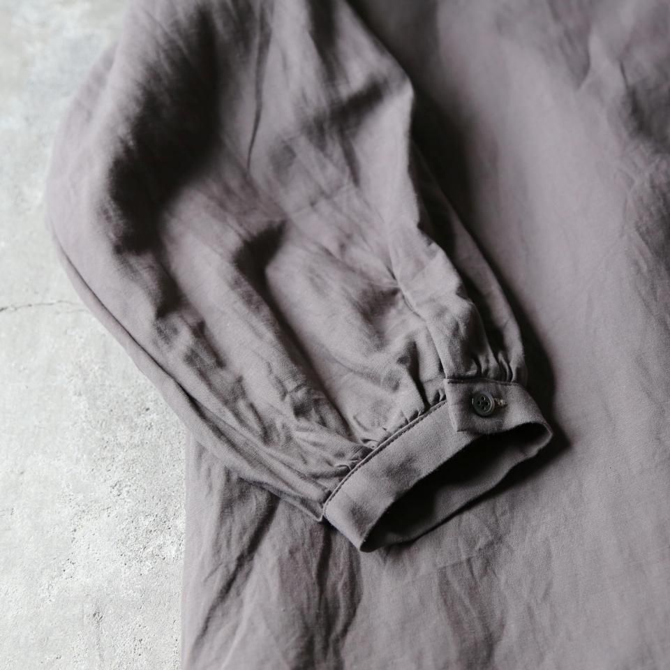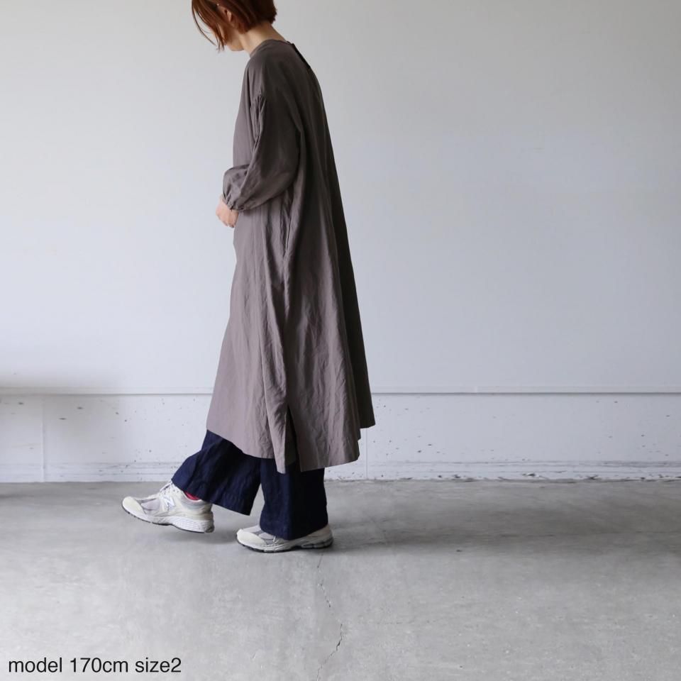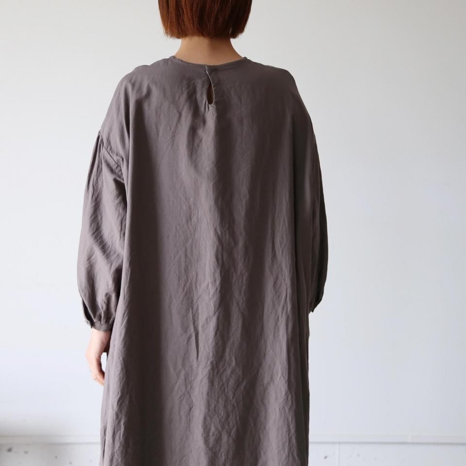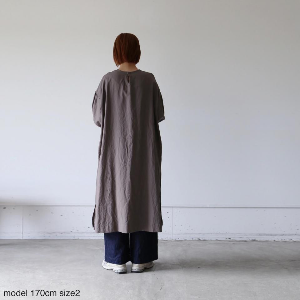 ふっくらと優しいフォルムのお袖のドレス。たっぷりとリラックスしたシルエットにやわらかなドレープ感。サイドスリットがアクセントになり、タイツを合わせてクラシカルな着こなしや、デニムを重ねてカジュアルなコーディネートにも。楽な着心地ながら、さりげない華やかさを添えてくれるドレスです。 すぽっとかぶって、後ろのスナップボタンを一つ留めるだけ。 コットンとラミー(麻)のナチュラルな素材感の中に微かに光沢が感じられ、カジュアルと高級感をあわせ持つ魅力的な素材です。高密度で滑らかな生地表面は、さらりとした肌触りで、日々袖を通したくなる心地良さです。 タートルをインしたり、ゆったりニットベストを合わせたり。コーディネートの幅が広がるアイテムです。 【商品在庫について】 web shopの在庫管理には注意を払っておりますが、実店舗で販売も行っているため、web shopへの在庫反映が若干遅れてしまう場合がございます。どうぞご了承ください。