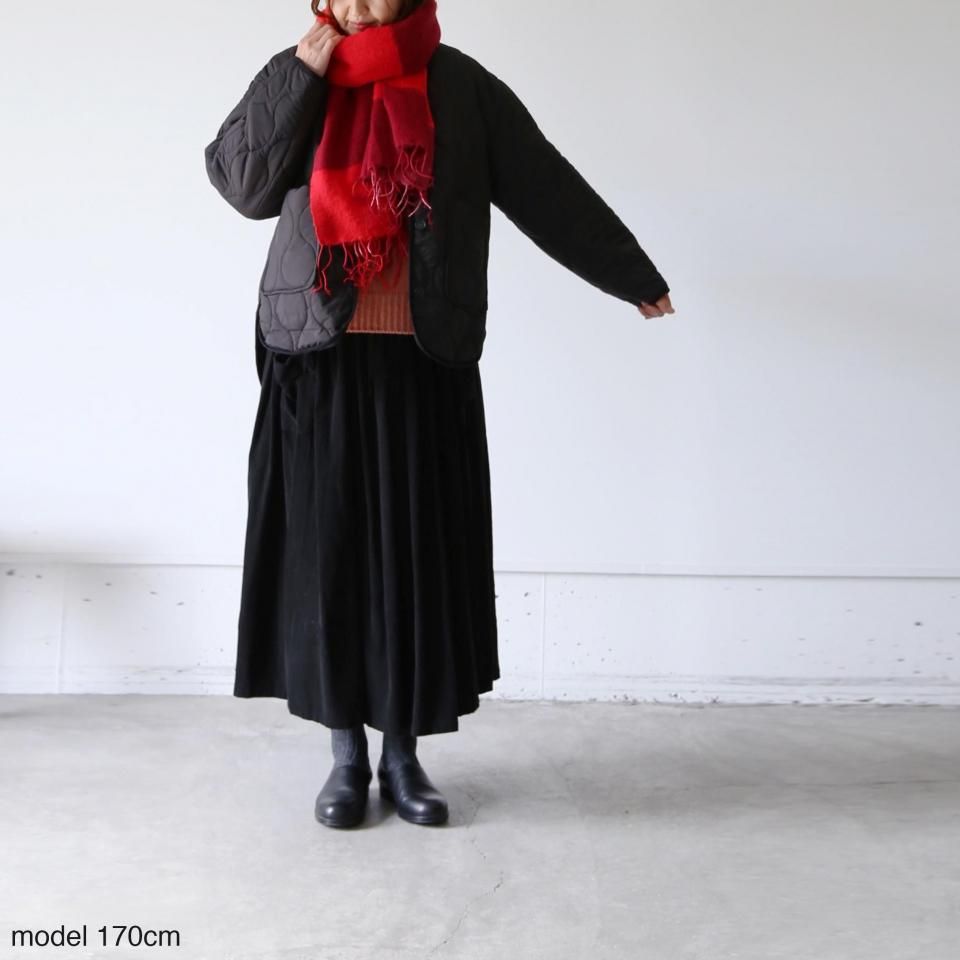 ミドル丈で腰まわりまでしっかりカバーしてくれるので、パンツスタイルにも気軽に羽織っていただけるジャケットです。
