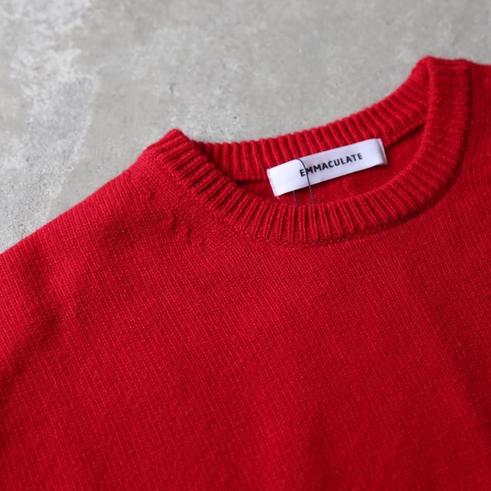 スポンジッシュで程よい厚みが心地良い、スーパーファインメリノウールを編み立てた、軽くてあたたかなクルーネックプルオーバー。 後ろ中心とアームホールに施された外リンキングがポイントになっています。 裾と袖口にリブが無いデザインですので、シャツやカットソーを中に合わせてもすっきりと着ていただけます。 冬の着こなしに映える、美しい発色が魅力的です。 【商品在庫について】 web shopの在庫管理には注意を払っておりますが、実店舗で販売も行っているため、web shopへの在庫反映が若干遅れてしまう場合がございます。どうぞご了承ください。