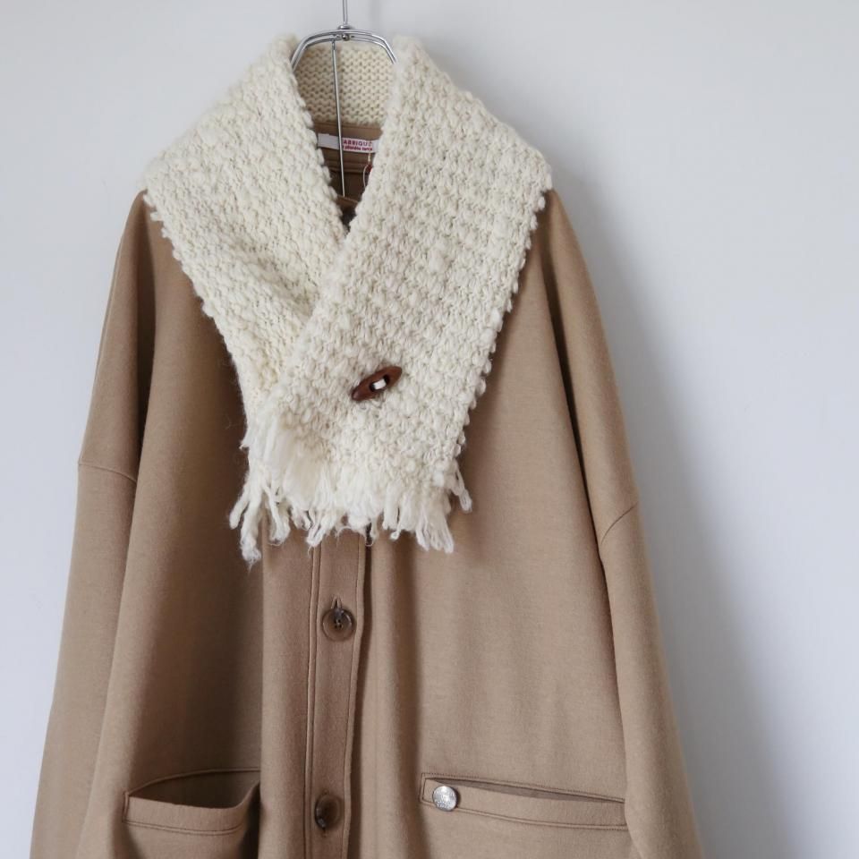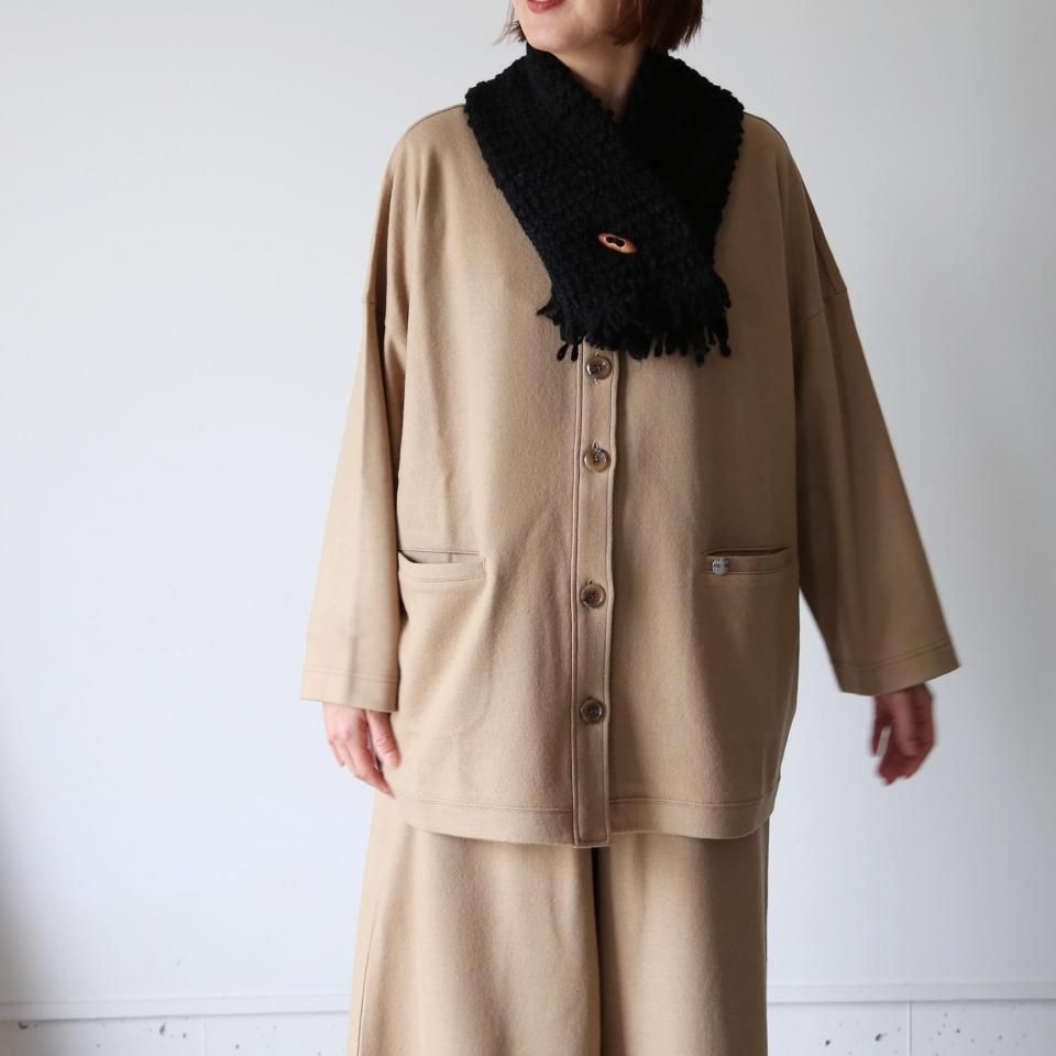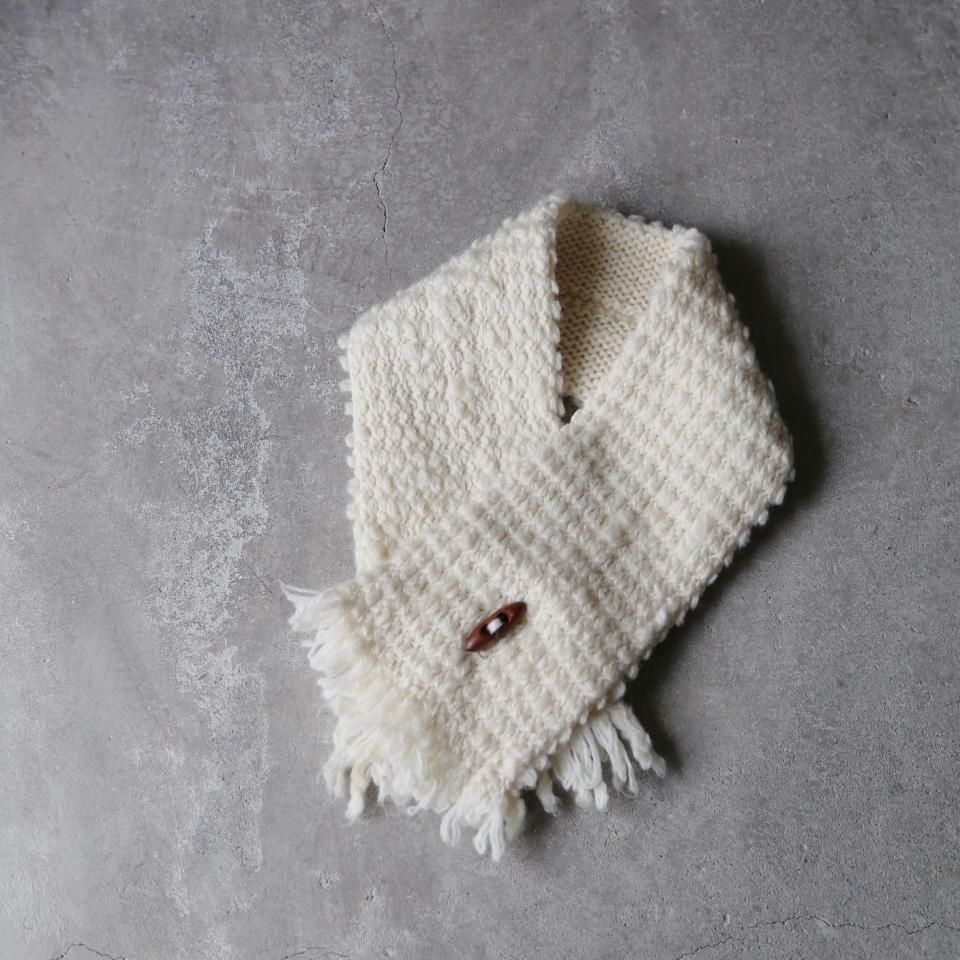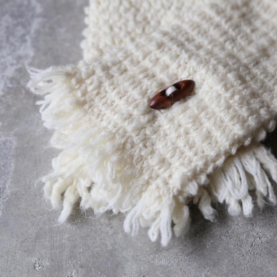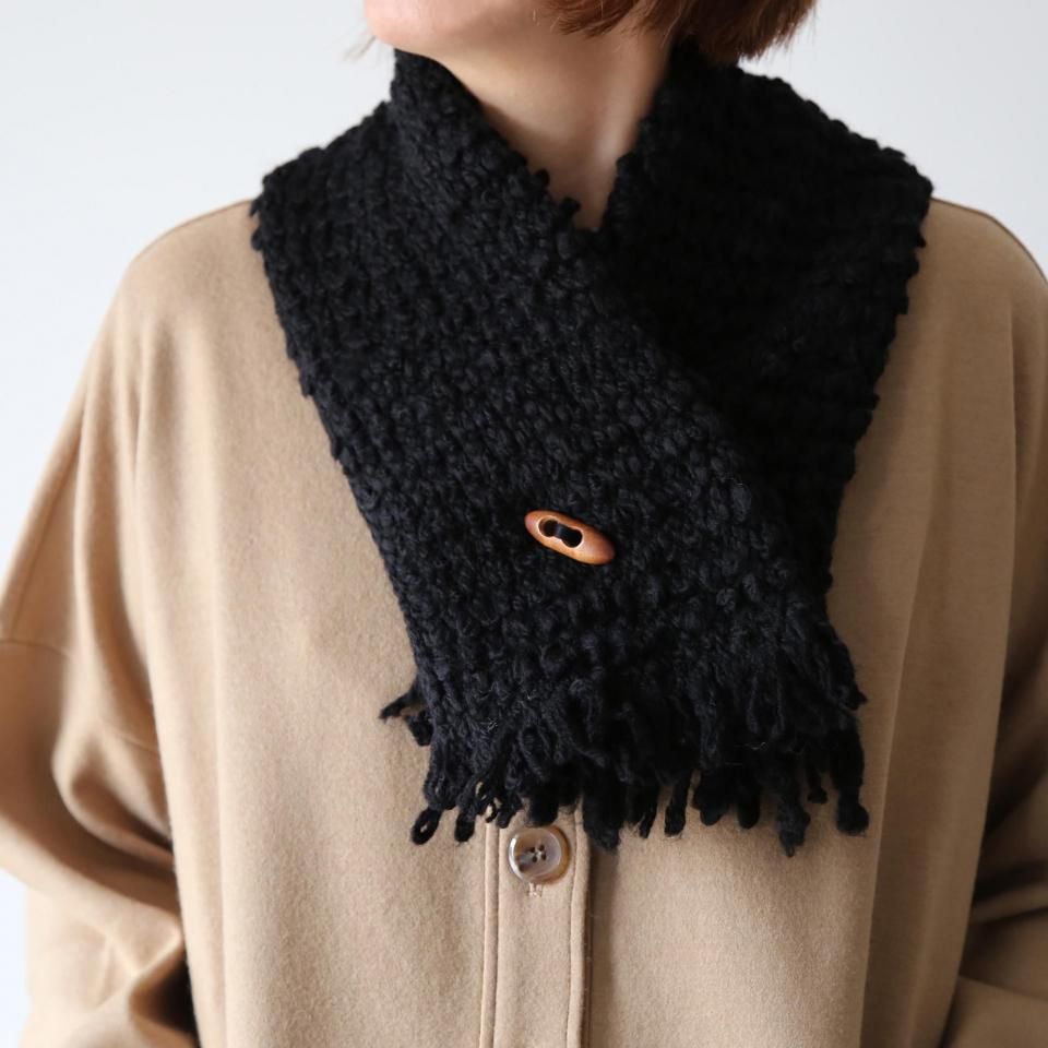 羊のカールした毛をイメージした、スラブ感のあるウール状に編み立てたミニマフラーです。裾のフリンジとウッドボタンがポイントに。 ぽこぽこと程よいボリューム感のある表情が愛らしい。程よいボリューム感があり、とても暖かく、冬の着こなしのポイントになる一点です。 【商品在庫について】 web shopの在庫管理には注意を払っておりますが、実店舗で販売も行っているため、web shopへの在庫反映が若干遅れてしまう場合がございます。どうぞご了承ください。
