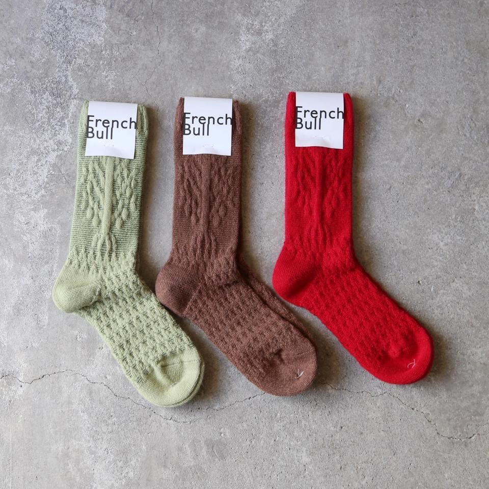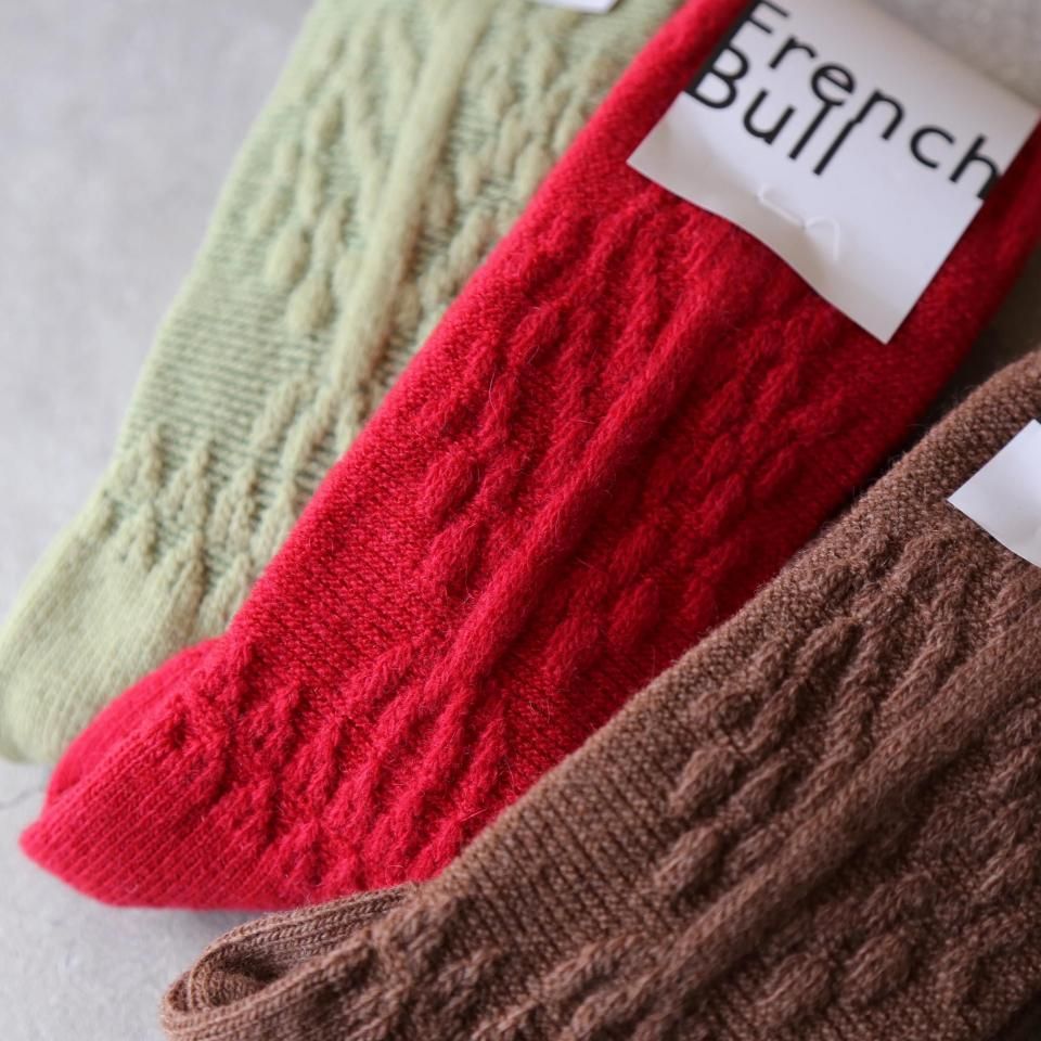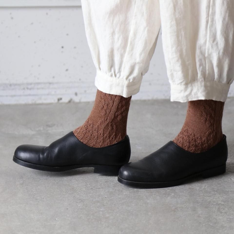 たわわに実ったリンゴの木をイメージした柄のソックスです。 やや毛足のあるアンゴラ混糸で凹凸感のある編み柄と、ふわっとしたあたたかみのある風合いがポイント。 冬の贈り物にもおすすめの一足です。 【ネコポス、クロネコゆうパケット対応商品について】 こちらの商品は3点以内のお買い上げ時のみ、ネコポス、クロネコゆうパケットがご利用いただけます。 4点以上のお買い上げ、他にご注文商品がある場合や、お急ぎのお客様は、宅急便での通常配送をお選びくださいませ。 【商品在庫について】 web shopの在庫管理には注意を払っておりますが、実店舗で販売も行っているため、web shopへの在庫反映が若干遅れてしまう場合がございます。どうぞご了承ください。