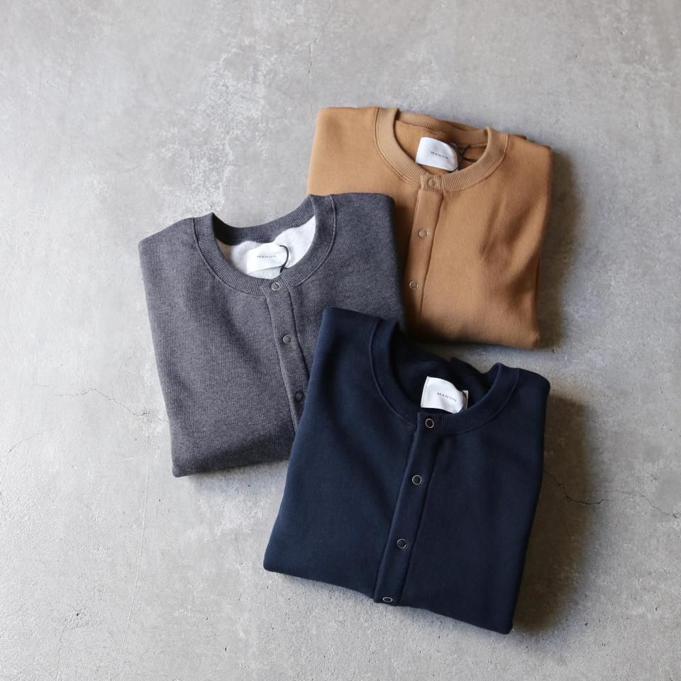 ふわふわと柔らかな裏起毛のカーディガンです。 程よくゆとりのあるサイジングで、冬は厚みのあるタートルネックをインしてあたたかな着こなしをお楽しみいただけます。 スナップボタンのシルバーがポイントになり、カジュアルすぎない雰囲気が日々の着こなしに幅広くフィットします。 コットン素材なので、春先まで長く活躍するアイテムです。 【商品在庫について】 web shopの在庫管理には注意を払っておりますが、実店舗で販売も行っているため、web shopへの在庫反映が若干遅れてしまう場合がございます。どうぞご了承ください。